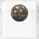 Rustic Wood String Lights Wedding Sticker . The design has faux wooden background with string lights. This can be customised by changing the name and wedding date. Easily personalise this design with your names, wedding date, and event details. Fonts, colours, and text placement can be adjusted to match your theme.