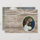 Rustic wood, string lights wedding thank you card