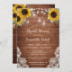 Rustic Wood Sunflower String Light Lace Mason Jars Invitation