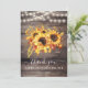 Rustic Wood Sunflower String Lights Wedding Thank You Card