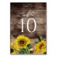 Rustic Wood Sunflower Wedding Table Number Cards. Faux foil branches. Script font highlights with easy to read serif name font. Easy to adjust for your own wedding needs. Personalised wedding table cards.