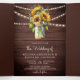 Rustic Wood Sunflowers Mason Jar QR Code Wedding Tri-Fold Invitation
