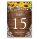 Rustic Wood Sunflowers String Lights Lace Wedding Table Number Card.