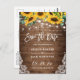 Rustic Wood Sunflowers String Lights Save the Date Postcard