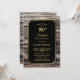 A rustic gold bordered wood surprise 50th birthday dinner party invitation with gold text on a black background.