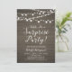 Celebrate your special day with this rustic surprise party invitation! This design features a stylish script typography and light strings on a rustic wood background. Perfect for a garden party, barn party, or any surprise party.