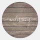 Rustic Wood Texture Personalised Signature Script Classic Round Sticker