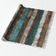Rustic Wood Texture Teal and Brown Decoupage Wrapping Paper