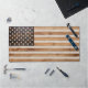 Show your American Spirit with the Rustic Wood Tone American Flag desk mat. Easily personalise with your name.