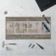 The Rustic Wood Tone Grey Monogram Stripe Desk Mat is a great way to protect your desk, counter or workbench in classic rustic style. Easily personalise with your monogram.