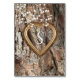 Pretty country rustic table card with tree bark, white flowers and a gold carved heart. RSVP and matching invitations also available.