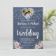This lovely watercolor Rustic Romantic Wood Twinkle Lights Photo Floral wedding invitation features a rustic slate blue wooden background with pink and white flowers, with just a touch of purple, highlighted by a photo of the bride and groom in the double heart. Touches of calligraphy are a perfect accompaniment to the beautiful flowers. A lovely design choice to set the tone for your wedding celebration. For any design question or additional customisation and / or matching items, just send an email to charmdesignstudio@rcn.com and we'll be delighted to assist. View the collection link on this page to see all of the matching items in this beautiful design.