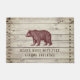 Rustic wood walking bear welcome mat for cabin, cottage, camper, bed and breakfast, tiny house nomad, with the quote:"bears must wipe feet before entering".Earthy rustic wood pattern with simulated nail edging design, giving this style an authentic natural nail edged wood barrel vibe.