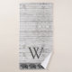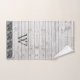 Rustic walking bears grey towel set with rustic wood background and your family name monogram initial, for home, cabin, camper or bed and breakfast (business name initial) accommodation.