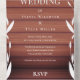 A rustic wood all-in-one wedding invitation. This invitation has a brown wood background and is decorated with white leaves. It includes the invitation as well as a tear-away RSVP card. Simply add your information, add this invite to your cart, and enjoy your beautiful wedding.