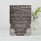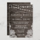 Rustic Wood Wedding Invitation with String Lights and Lace |