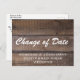 Rustic Wood Wedding Postponed Change of Date Announcement postcard