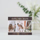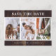 Rustic country wedding photo save the date postcards featuring an engagement photo collage on a rustic wood background. Personalised barn wedding save the date postcards. Customisable rustic country wedding save the date postcards. Large numbers wedding save the date postcards. 3 photo save the date postcards. Rustic wood photo collage save the date postcards.