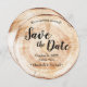 The design imitates a wood disc slice, adding a touch of charm and authenticity to your save the date card. It's a perfect way to set the tone for your rustic and romantic wedding celebration.