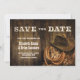 Notify your friends and loved ones of your upcoming wedding with this rustic wood western wedding save-the-date card.