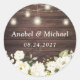 Rustic Wood White Flowers Mason Jar Envelope Seal Sticker. String Lights Wood Greenery Wedding Envelope Sticker