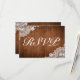 Wedding RSVP invitation card. Rustic style with wood planks background and white lace decor. More items are available in this style in our store. You can edit the design further, change colours, fonts and add extra text by clicking "customise further" link.