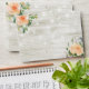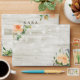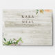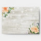 Wedding 5x7 Envelope Templates - Elegant Peach White Roses Floral and String Lights on Rustic Wood Background.