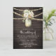 Rustic Wood White Roses Mason Jar QR Code Wedding Invitation