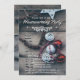 Rustic country, barn wood holiday housewarming invitations- Weathered grey, scarred old barn wood planks photo background with country style Christmas tree ornaments and red and white jingle bells. Reads 'Please Join Us for a Housewarming Party' in pale grey with shadow look. An elegant scroll border separates the introduction from the party details. Back has matching rustic wood background. Note: All images are printed. Use the Customise It button to change anything - font styles, sizes, colours, or placement. Pretty country winter invites for rustic themes, country chic housewarming parties, country cabin housewarming or housewarming celebration during the winter holiday Christmas season. Elegant open house holiday party invitation as well. We have coordinating party supplies and rustic holiday decor in our Zazzle.com/angela65 shop. Beautiful, elegant and rustic housewarming party invitations ready to be personalised with your own details.