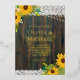 Beautiful modern, elegant trending rustic wood, Sunflowers lace and lights graphics with real gold foil typography wedding invitation. Perfect for a rustic wood themed wedding, vintage art deco wedding, black tie wedding, roaring twenties. Matching RSVP postcard is here: https://www.zazzle.com/rsvp_with_menu_template_black_gold-256744067070192796