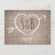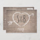Rustic Wooden Heart Elegant Wedding RSVP Postcard features a wood effect background with carved heart and arrow design front and back. Customise for your own names, address, initials.