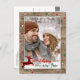 Unique, classic, trendy, rustic and decorative Holiday card, with Happy Holidays Joyful New year text quote, and room to customise or personalise with a photo and names (or family name) of your choice on a rustic country cottage style weathered farmhouse barn wood planks texture pattern, and festive classic red and green coloured scattered confetti.