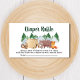 Sweet rustic baby shower diaper raffle enclosure card featuring a cute watercolor illustration of woodland animals with their tent camping in the mountains and forest and "Diaper Raffle" and in a dark hunter green script.