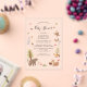 Simply create a cute woodland animals baby shower invitation with this template featuring an owl, fox, bear, squirrel, deer, mushrooms and more for your cottage core theme shower for the mum-to-be.