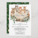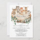Celebrate the upcoming arrival of your little one with this whimsical woodland themed baby shower invitation. The design features a group of adorable forest animals and rustic botanical greenery.