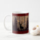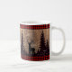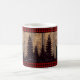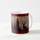 Rustic Woodland Deer Mug With custom rustic wood background and red buffalo plaid pattern on top and bottom of the glass. This is the perfect mug design for a winter scene.