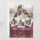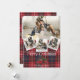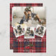 Red flannel lumberjack style shirt plaid background accents this rustic photo frame Christmas card - faux Polaroid framed photos for this 4 photo Holiday greeting Card - Merry Christmas contemporary font (which you can change if you like) with 4 of your favourite photos featured along with a place to write hand written font who is in the photos or what they are doing . A vintage red pickup truck hauling the Christmas tree home under the Christmas Greeting finishes this rustic back home feel. Easy to customise - the reverse is matching red flannel shirt plaid with a vintage style frame that appears to be taped to the card and one photo of your choice. Great for framing.