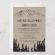 This rustic woodsy mountain elopement reception invitation is perfect for a woodland post elopement party. The nature inspired design features the silhouette of a pine tree forest and mountains on faux kraft paper. RSVP cards are sold separately.