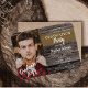 Rustic woodsy wood and burlap look photo magnetic graduation party invitation design by Holiday Hearts Designs with template photo credit to Meireles Neto of Unsplash.