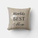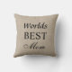 This rustic throw pillow has "Worlds Best Mum", written on it in interesting type with a delicate white dandelion on an illustrated burlap background, making it the perfect gift for the mum who likes rustic, country accessories on Mother's Day, her birthday, or other special occasion.