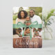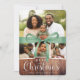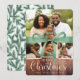 Festive holiday photo card features four of your favourite images adorned with a green watercolor ribbon bow illustration. "Merry Christmas" appears beneath in white lettering on a rustic wood plank background. Personalise with your names and the year.