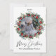 Rustic Wreath Floral Berry Photo Merry Christmas Holiday Card