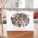 Elegant botanical holiday cards feature your favorite horizontal or landscape oriented photo encircled by an oval wreath of lush rustic foliage and flowers. Personalize with your custom greeting and names beneath; shown with "Season's Greetings."