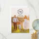 This modern, minimalist wedding thank you photo card features a pretty, rustic laurel wreath, monogram initial, and a full-bleed photo. Additional photos and text can be added to the back of the card if desired.