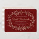 Rustic Rosh Hashanah invitation featuring a white floral wreath on a dark red background.