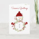 Rustic Wreath Snowman with Red Hat and Mittens Holiday Card