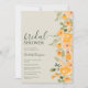 Rustic yellow floral watercolor fall bridal shower with pretty wild country rustic flowers in yellow, orange, green leaves and more, with a brushed script typography on an elegant editable light green background.