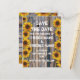 Elegant bright yellow sunflower floral flowers, pretty stylish modern western old wood wooden textured barn door, natural rustic country farm or ranch themed style spring or summer wedding save the date, easily personalised with the bride and grooms names to the text templates to create your own unique feminine girly custom tying the knot save the date for your special marriage occasions and celebrations. Visit the PERSONALIZED_ WEDDINGS STORE for matching coordinated wedding sets. CUSTOMIZE to adjust the text and font.