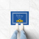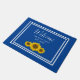 Enjoy this elegant monogram welcome doormat on a blue background. A simple white border and white customisable lettering allow you to add your own information. Yellow sunflowers add a rustic style to this item making it perfect for welcoming guests to your home or vacation house.