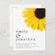 Rustic Yellow Sunflower Wedding Save The Date. A giant beautiful sunflower fills the top right hand side and and your names are large below in stylish lowercase with the details at the bottom. Easily personalise the text to your own details.